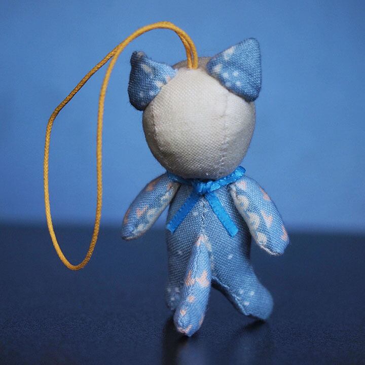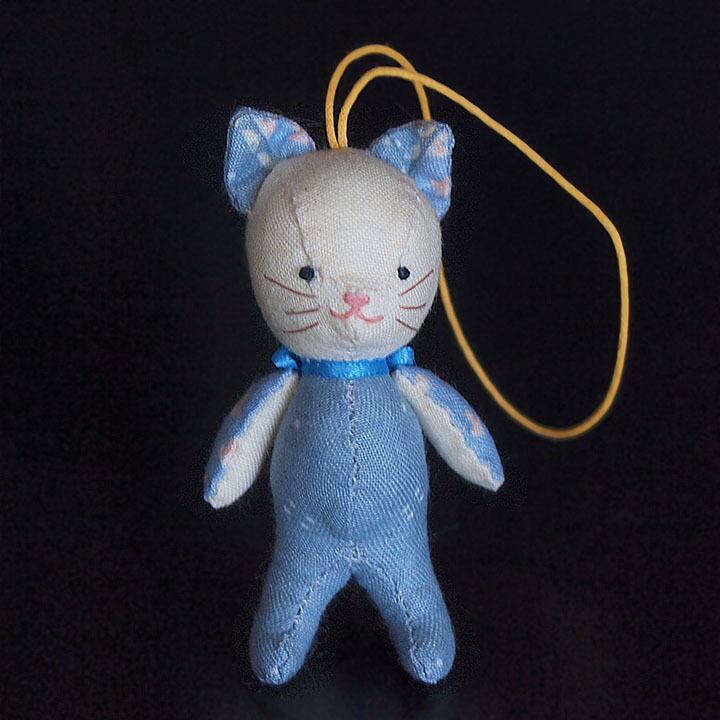 幼児体型?の可愛いネコは手足が動き、しっぽで支えて1人立ち出来ます。ストラップだけでなく、棚の上に飾って可愛がってあげてください。